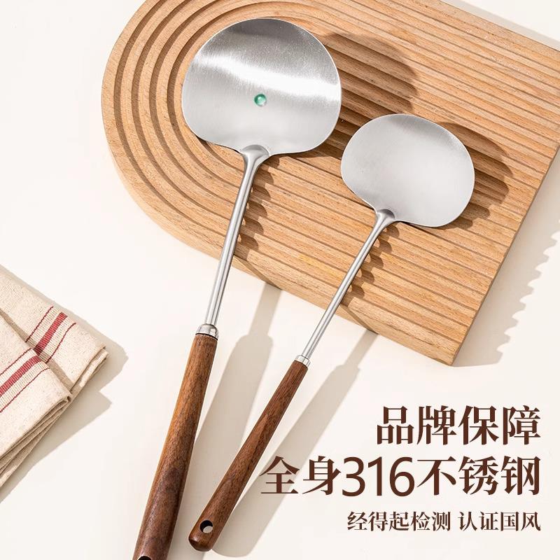 家用木柄汤勺套装 德国蘑菇头锅铲 316不锈钢食品级炒菜铲