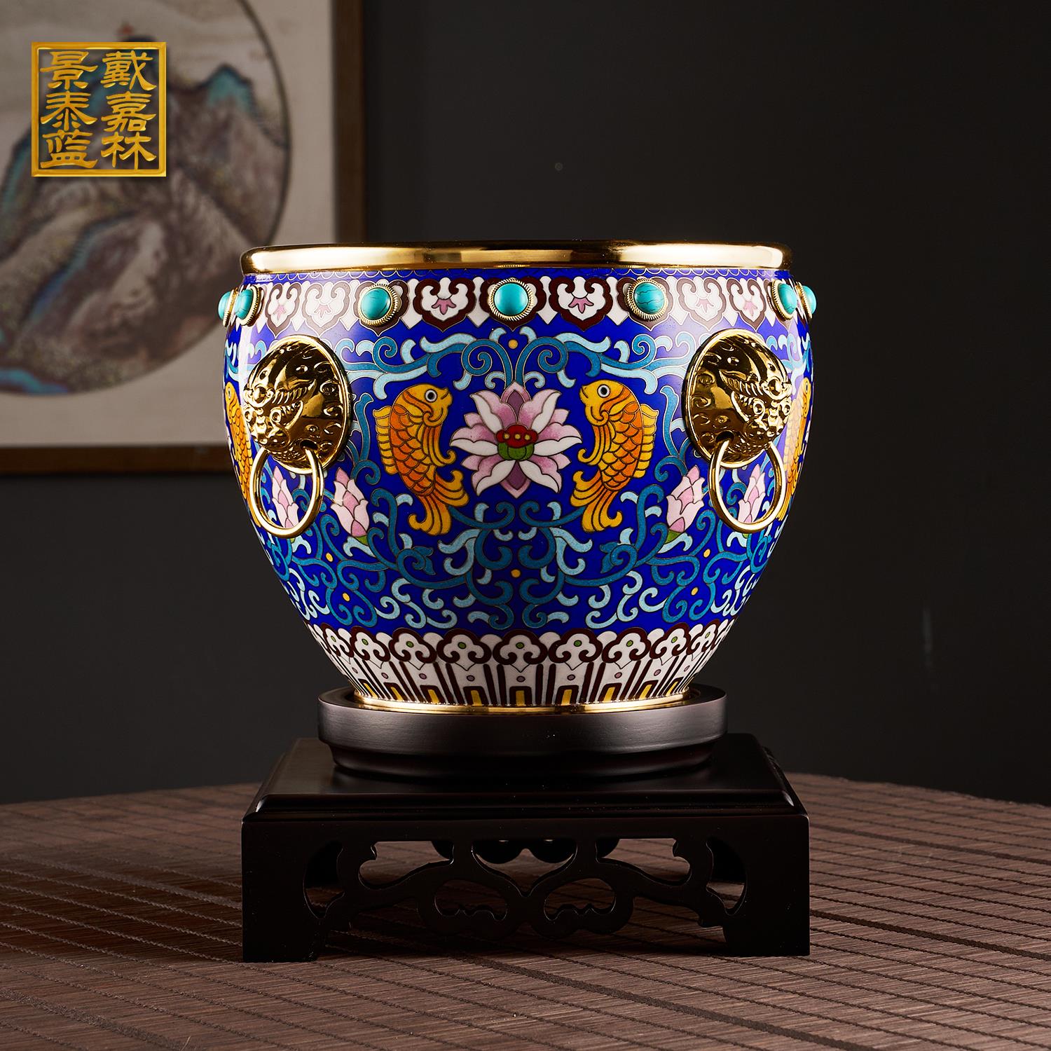 戴嘉林景泰蓝龙购四海福运缸工艺品摆饰聚宝盆开 业招财缸