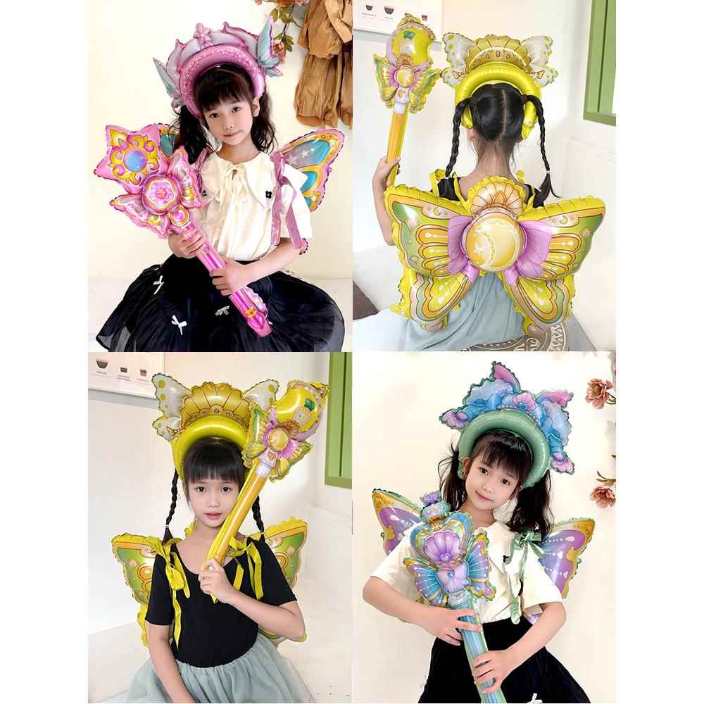 儿童气球蝴蝶翅膀背饰卡通巴啦啦小魔仙女魔法棒女孩生日派对装 饰