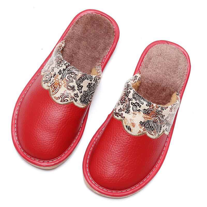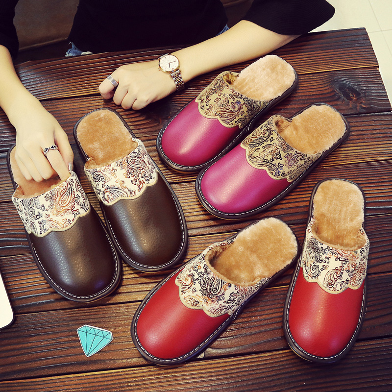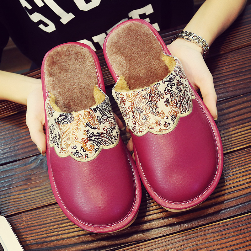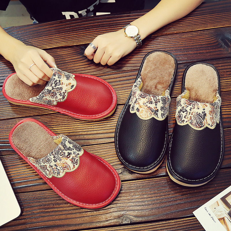 防滑保暖情侣 防水皮面月子鞋 冬天男女士室内家居冬季 居家棉拖鞋