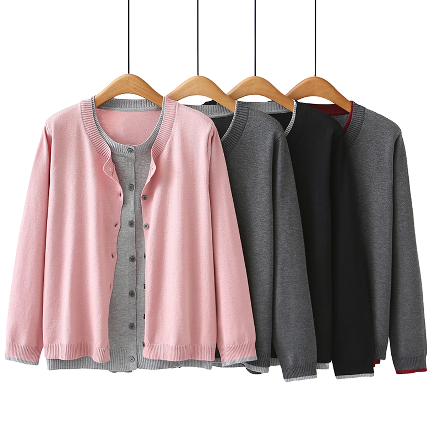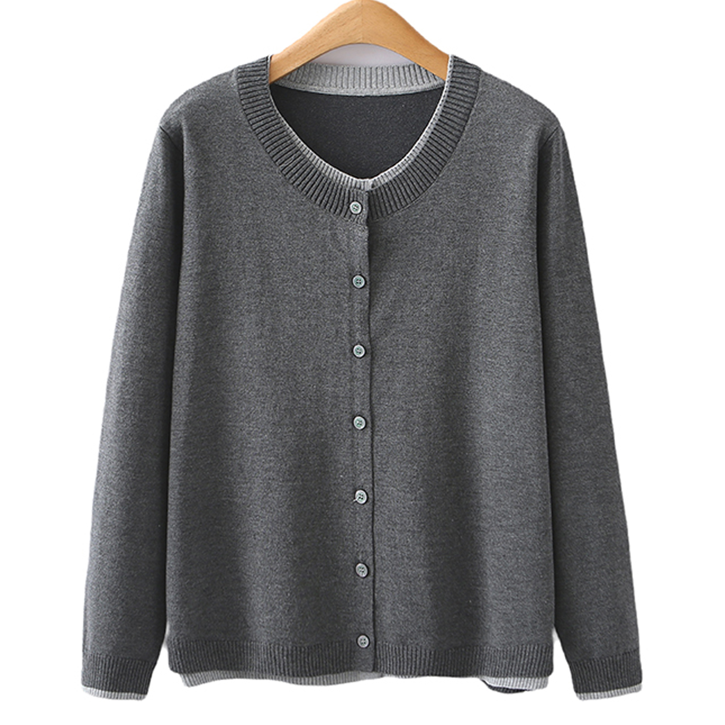 春秋宽松遮肚子毛衣外套通勤百搭上衣 针织开衫 胖mm大码 假两件长袖