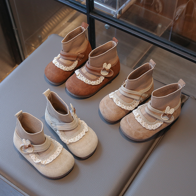 皮鞋 2025春秋新款 女宝宝百搭袜子鞋 女童休闲鞋 潮 儿童软底防滑单鞋