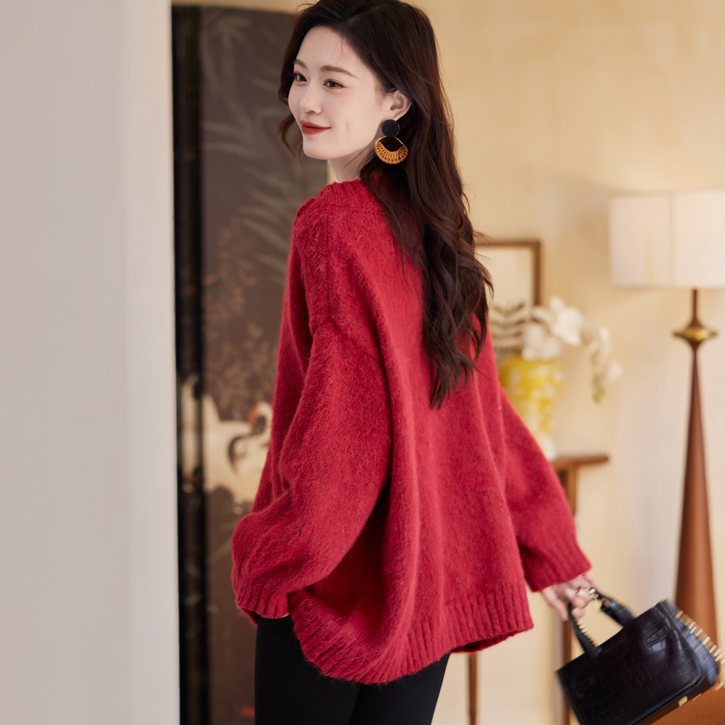 高级感上衣宽松打底针织衫 圆领100%纯山羊绒衫 女高端毛衣秋冬新款