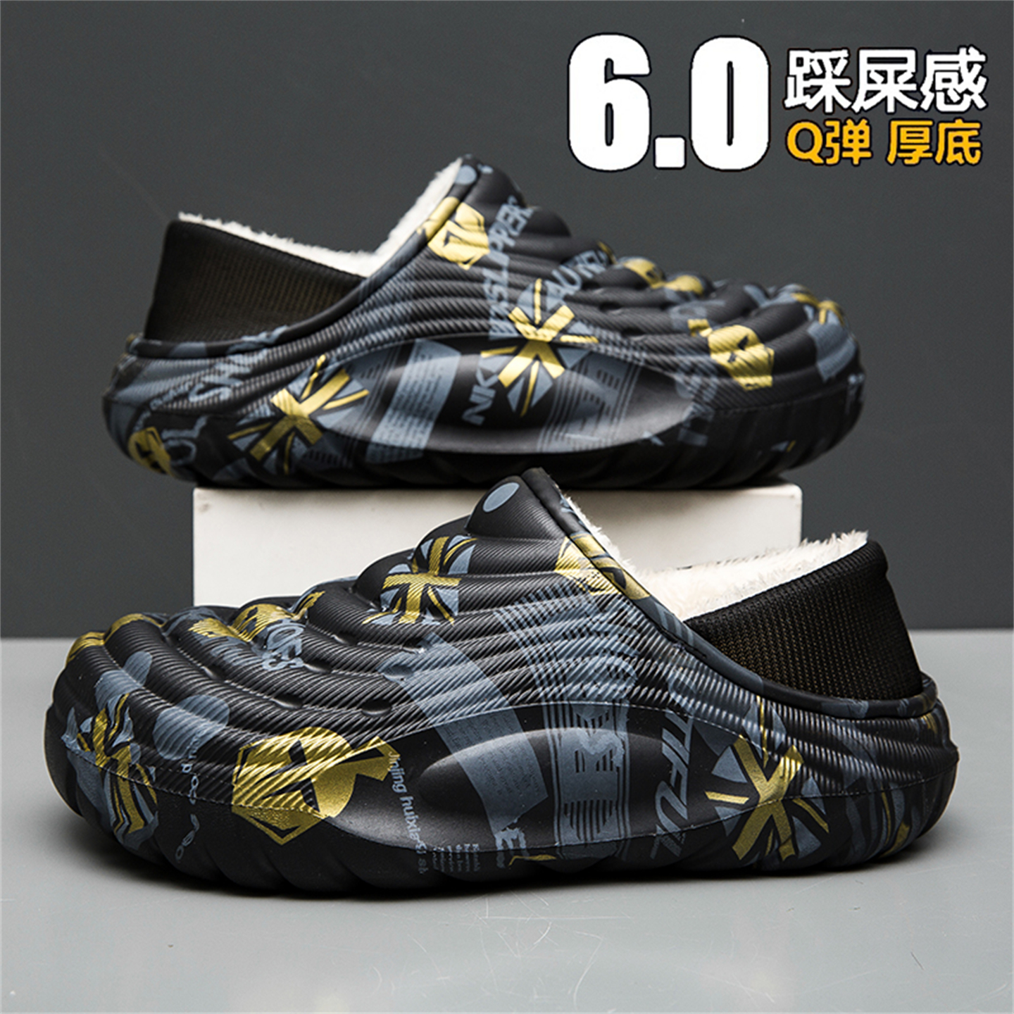 加绒保暖外穿防滑厚底踩屎感居家包跟棉鞋 棉拖鞋 冬季 2025新款 男士
