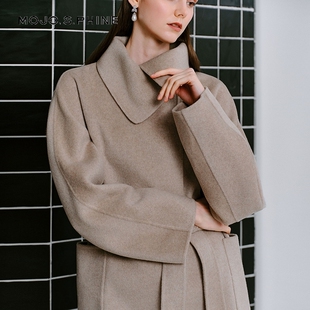 图曼朵灰色双面呢羊毛大衣女秋冬新款 毛呢短外套 高级感小个子短款