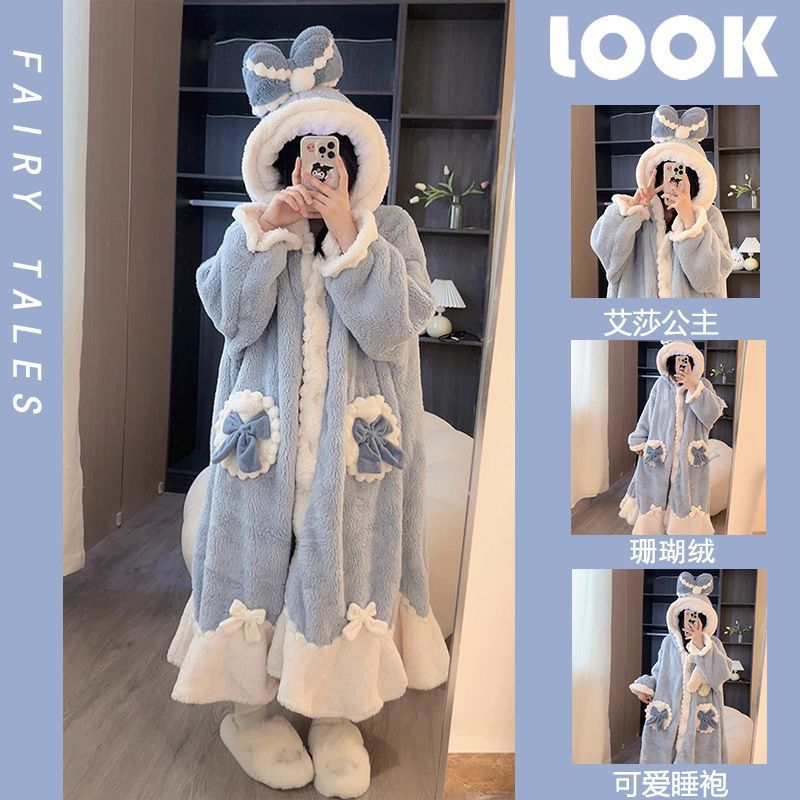 睡袍情侣家居服学生加绒加厚 女秋冬中长款 珊瑚绒睡衣2025新款 冬季