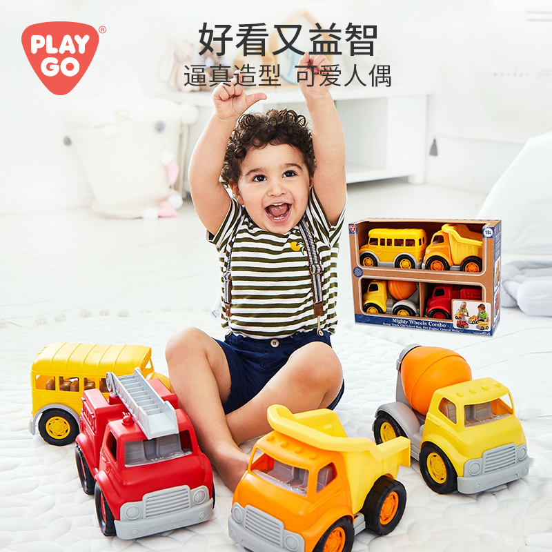playgo儿童大号玩具小汽车环卫云梯消防车宝宝玩具工程翻斗消防车