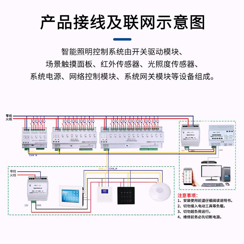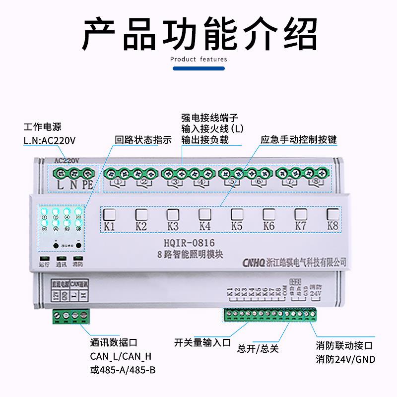 智能照明控制模块面板CAN通讯时控经纬度开关8回路灯光控制器系统