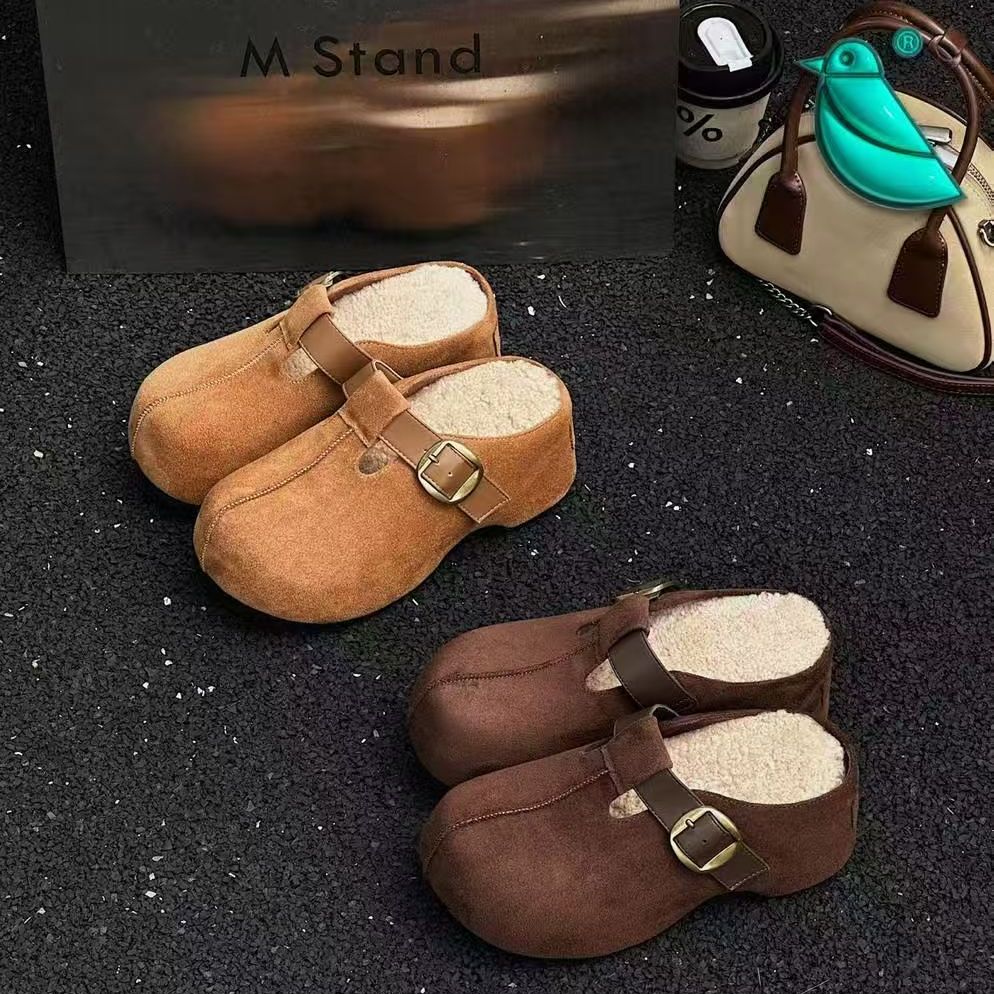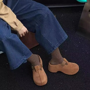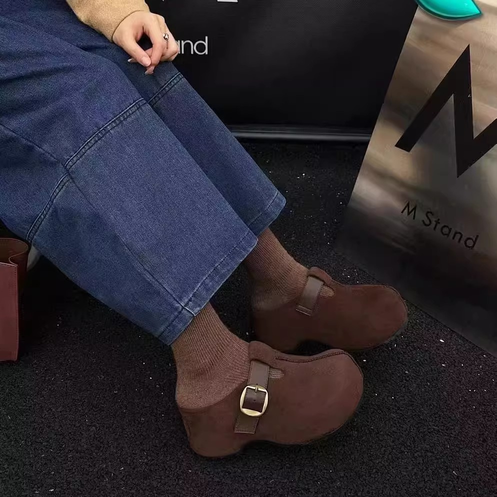 一脚蹬平底韩国复古扣带包头两穿博肯鞋 女鞋 女半拖 2025新款 悦女鞋