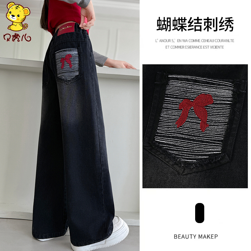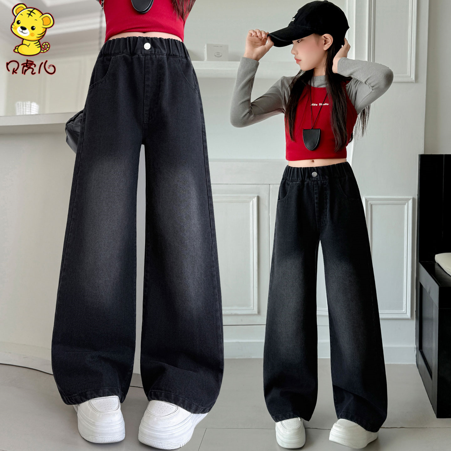 女童裤 儿童裤 子2025秋冬新款 牛仔裤 子 中大童直筒阔腿裤 植木童装
