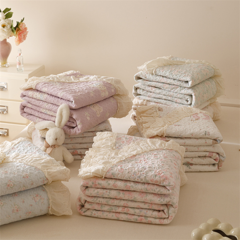 高端a类空气拉绒床盖三件套加绒加厚防滑冬季 夹棉床单花边公主风