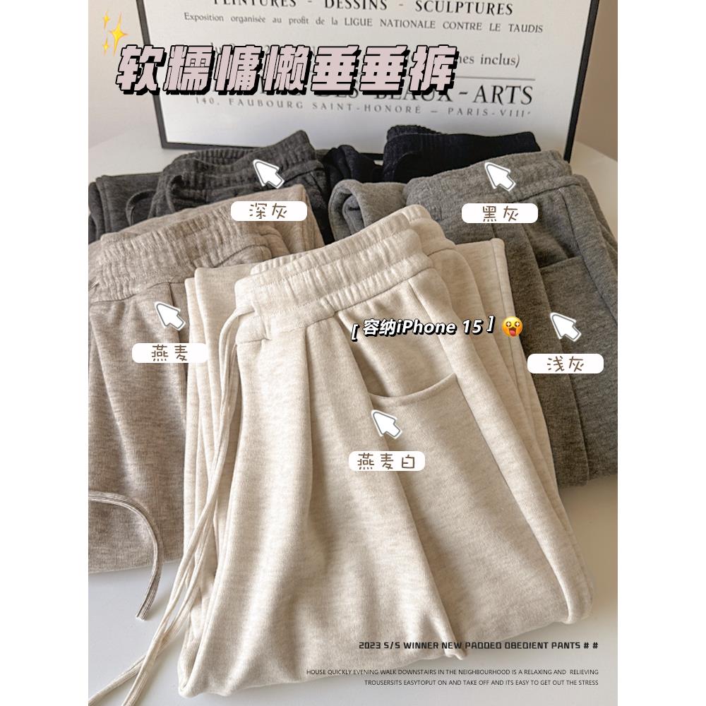 子 宽松阔腿裤 燕麦白色糯米裤 女春秋2025直筒垂感慵懒秋冬加绒大码