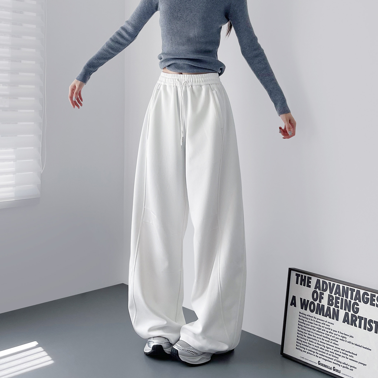 显瘦慵懒风直筒垂感运动裤 白色高腰软糯阔腿裤 胖mm大码 新款 女秋季
