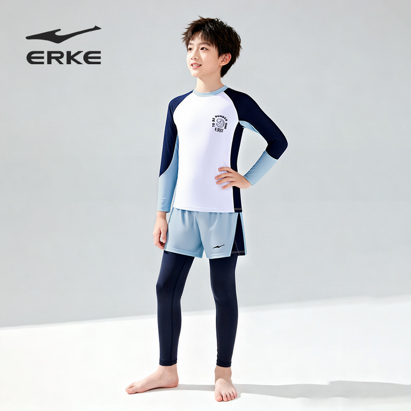 防晒套装 防寒保暖中大童男孩游泳裤 长裤 回力儿童泳衣男童分体长袖
