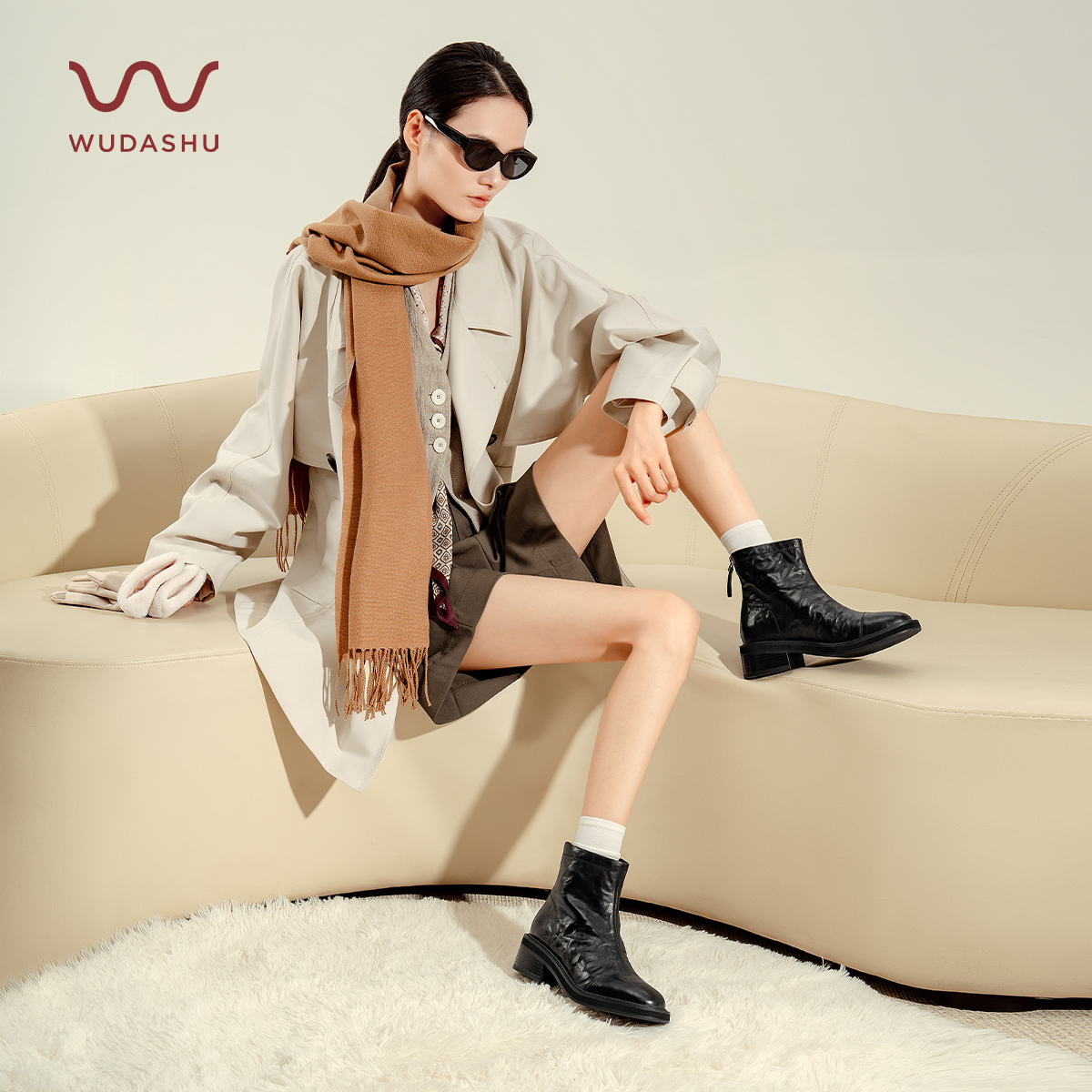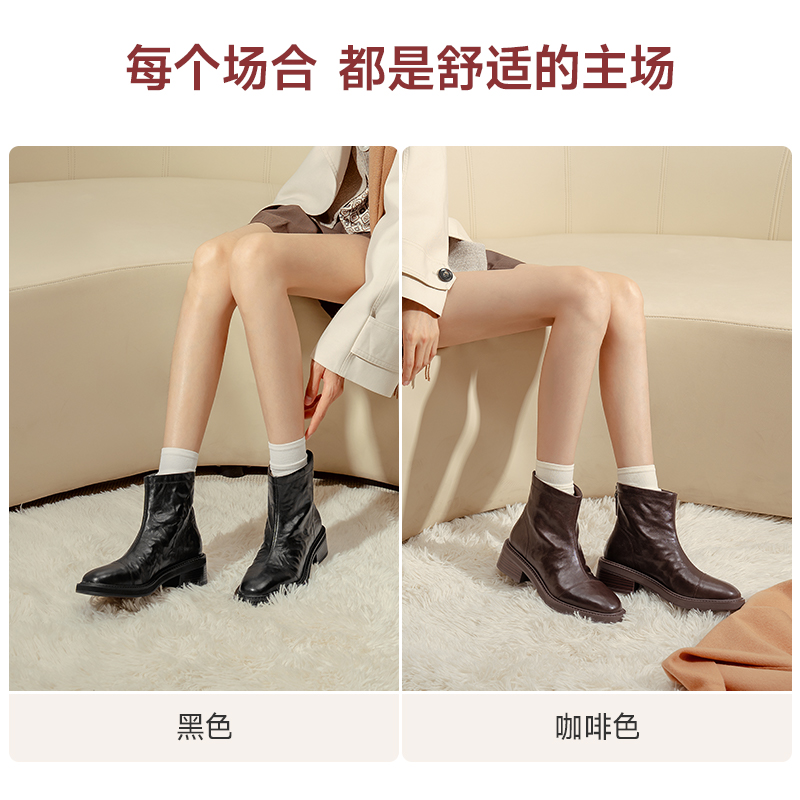 吴大叔2025秋冬鹅绒靴气垫缓震真皮加绒短靴粗跟百搭气质切尔西靴