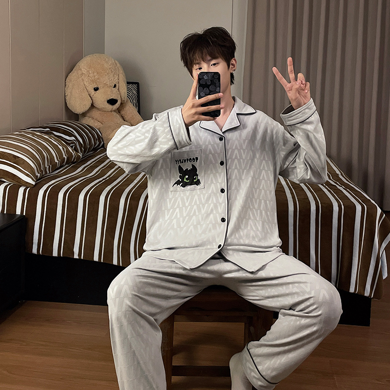 运动休闲家居服套装 套头大码 男 纯棉长袖 红豆柔柔棉睡衣情侣春秋款