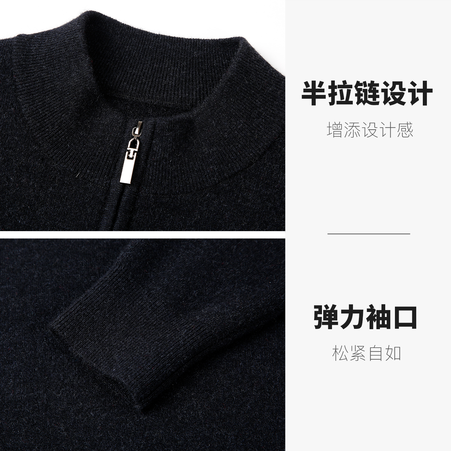 Tommy秋冬男装 针织毛衣 纯羊毛休闲通勤半拉链立领纯色绞花羊毛衫
