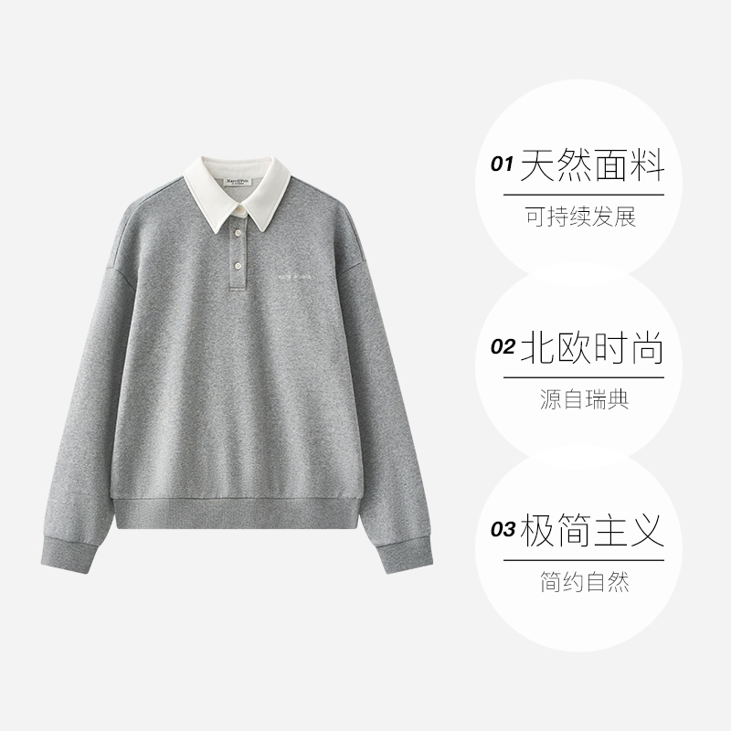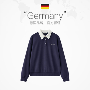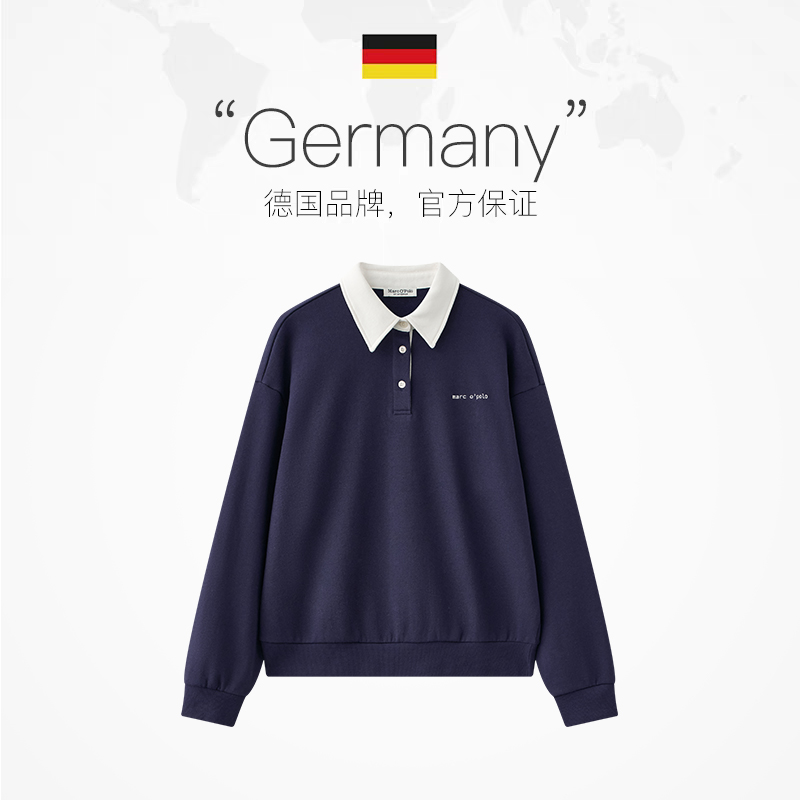Marc Polo2025秋季 新款 卫衣外套女 纯棉撞色POLO领长袖 自营