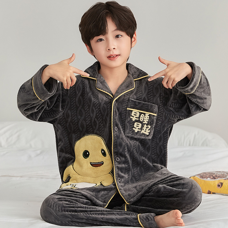 全棉初中学生家居服套装 纯棉卡通青少年秋天薄款 长袖 睡衣男春秋季