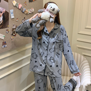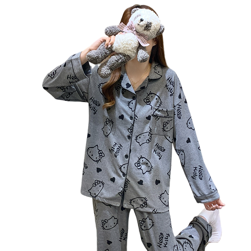 睡眠 保暖卡通可爱HelloKitty女士家居服套装 德绒睡衣女秋冬款 开衫