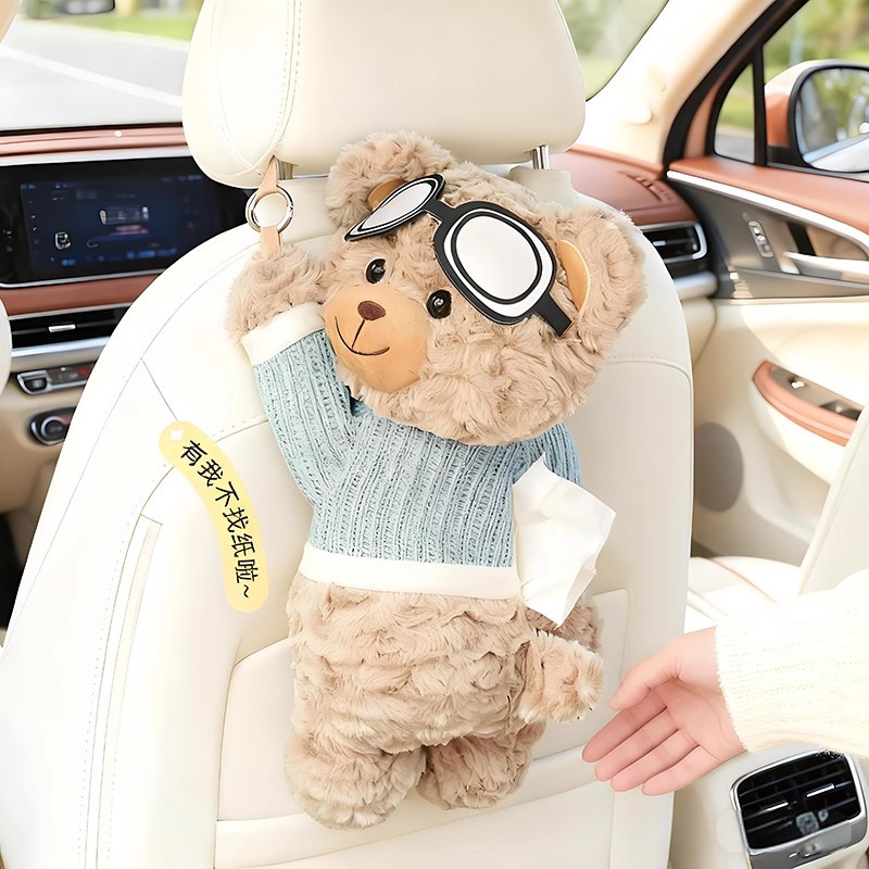 创意车载纸巾盒汽车抽纸盒挂式 饰品纸巾挂袋 高级感可爱卡通车内装