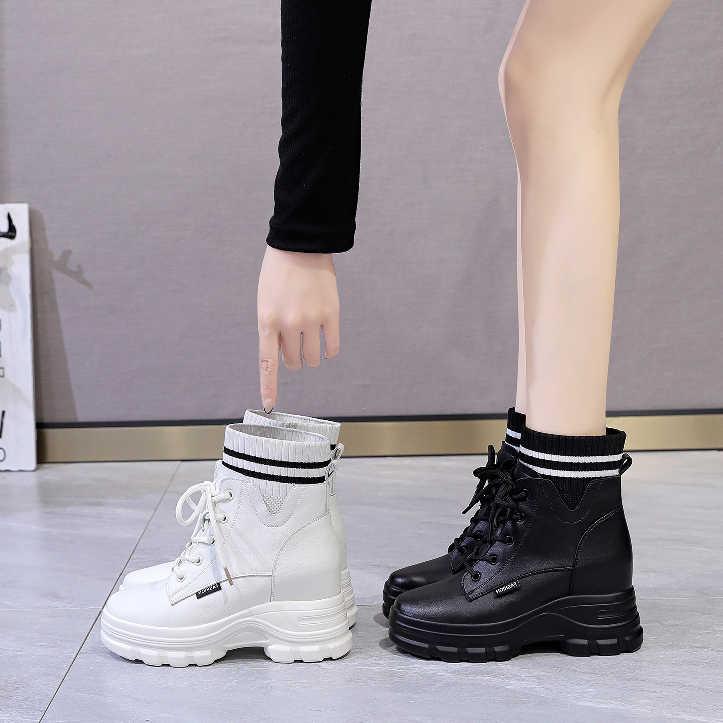 靴子 真皮防水厚底增高工装 森马马丁靴男秋季 高帮百搭休闲白色板鞋