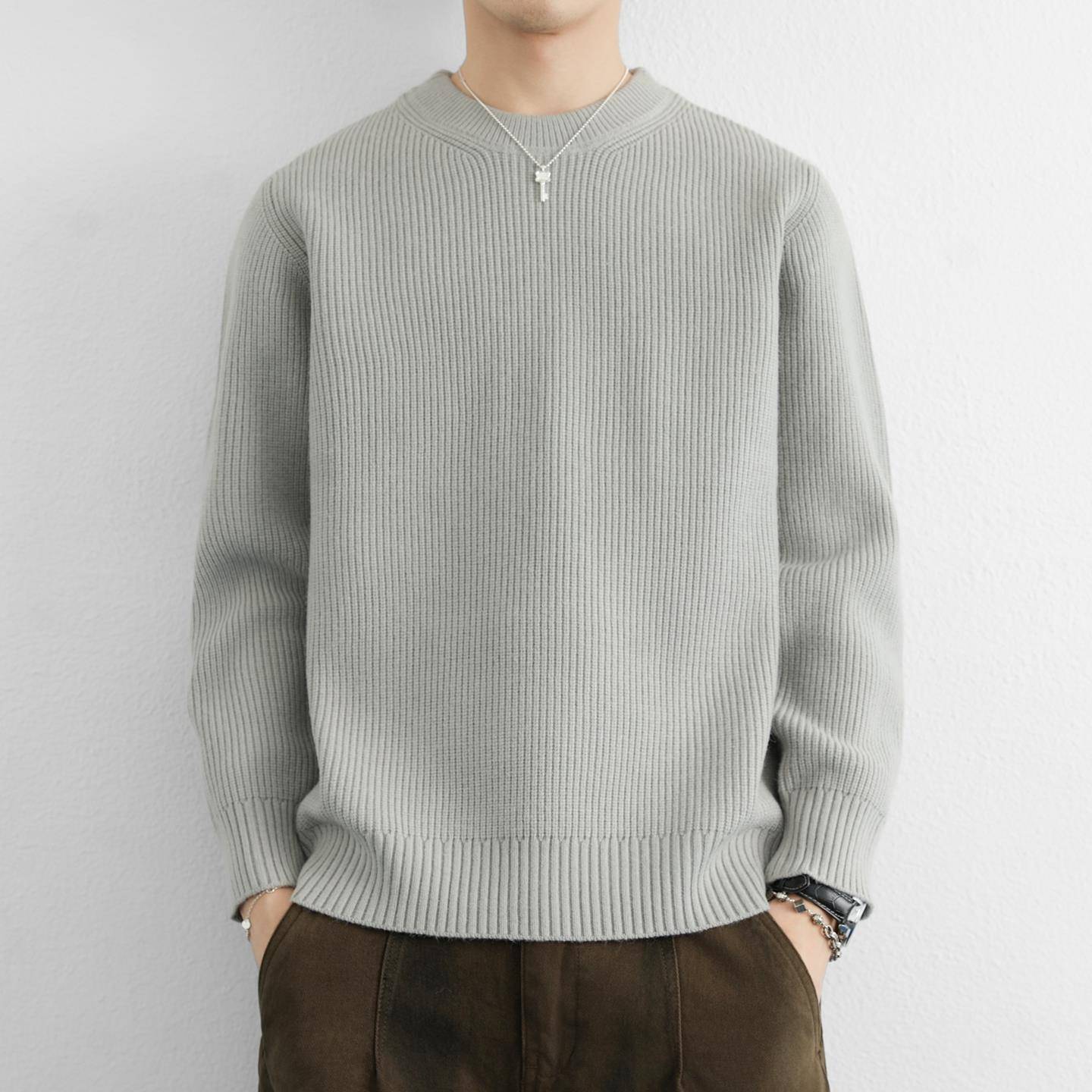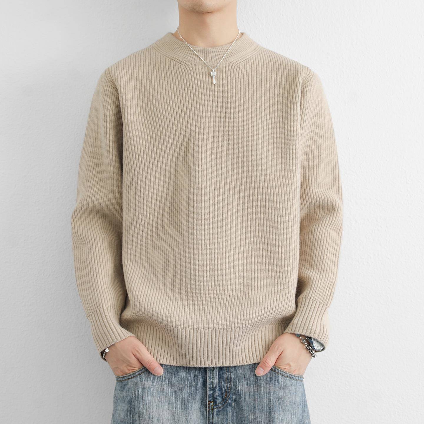 新款 2025冬季 加厚保暖宽松1014r 本命年打底衫 大红色圆领毛衣男士