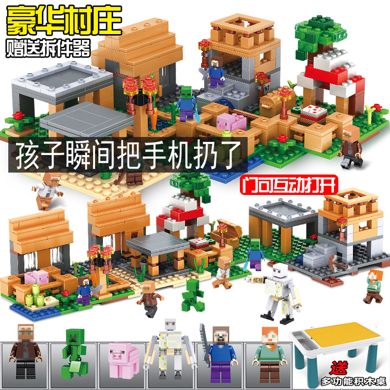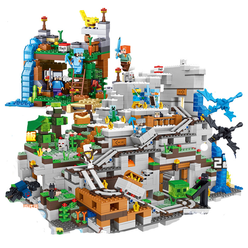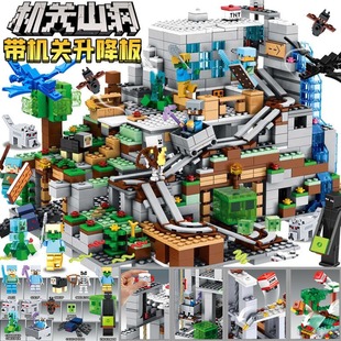 小颗粒 玩具高难度机关山洞房子新款 兼容乐高我 世界系列积木拼装