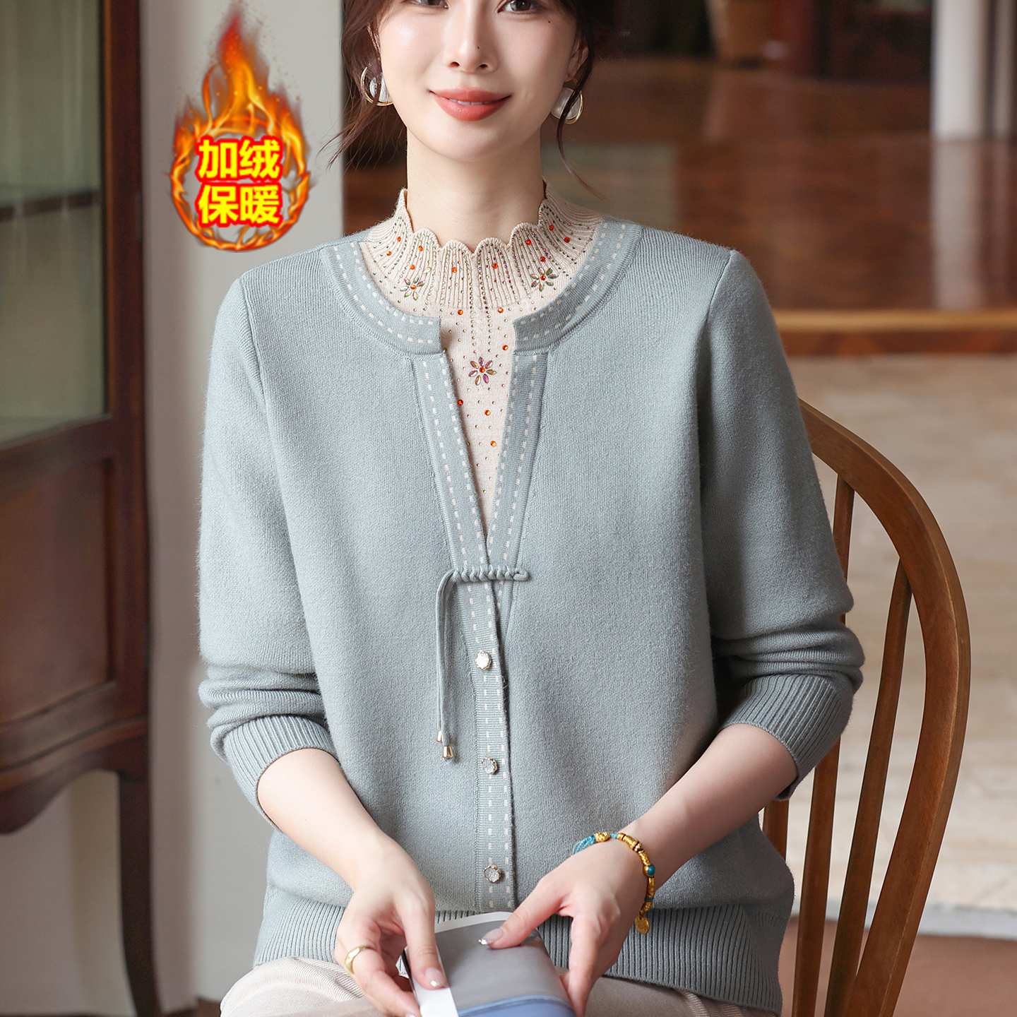 套装 毛衣加绒保暖内搭中老年人洋气一体绒打底衫 妈妈秋冬装 新中式