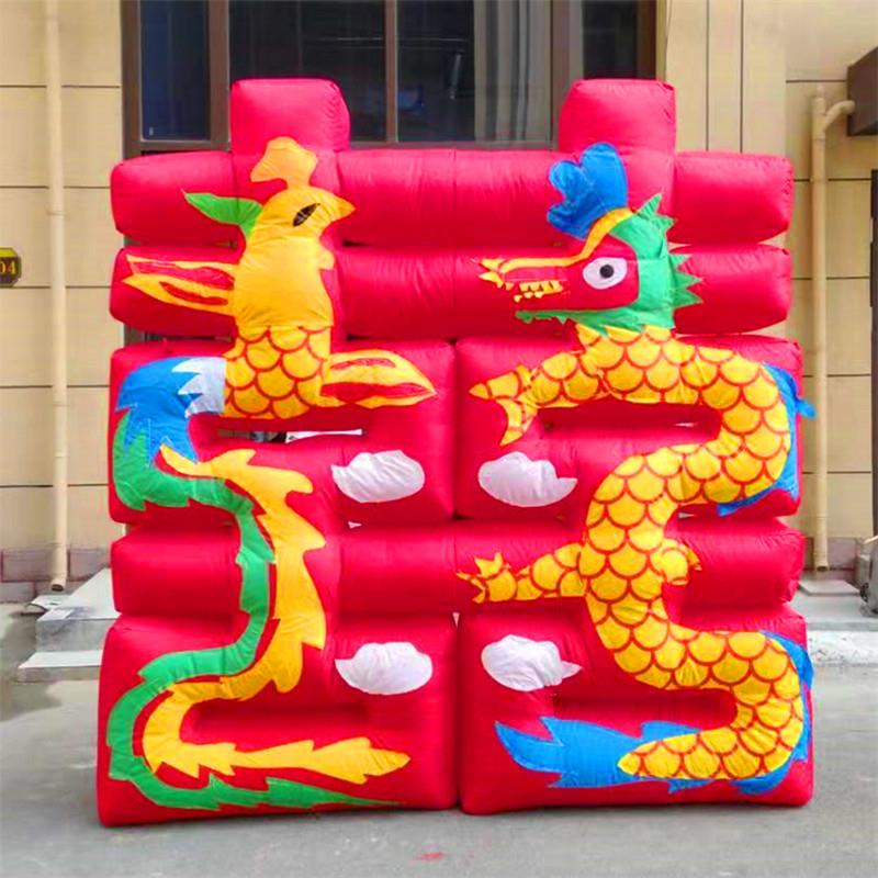 大喜字充气红金拱门婚庆道具布景气模龙凤双喜字大红背景墙喜字门