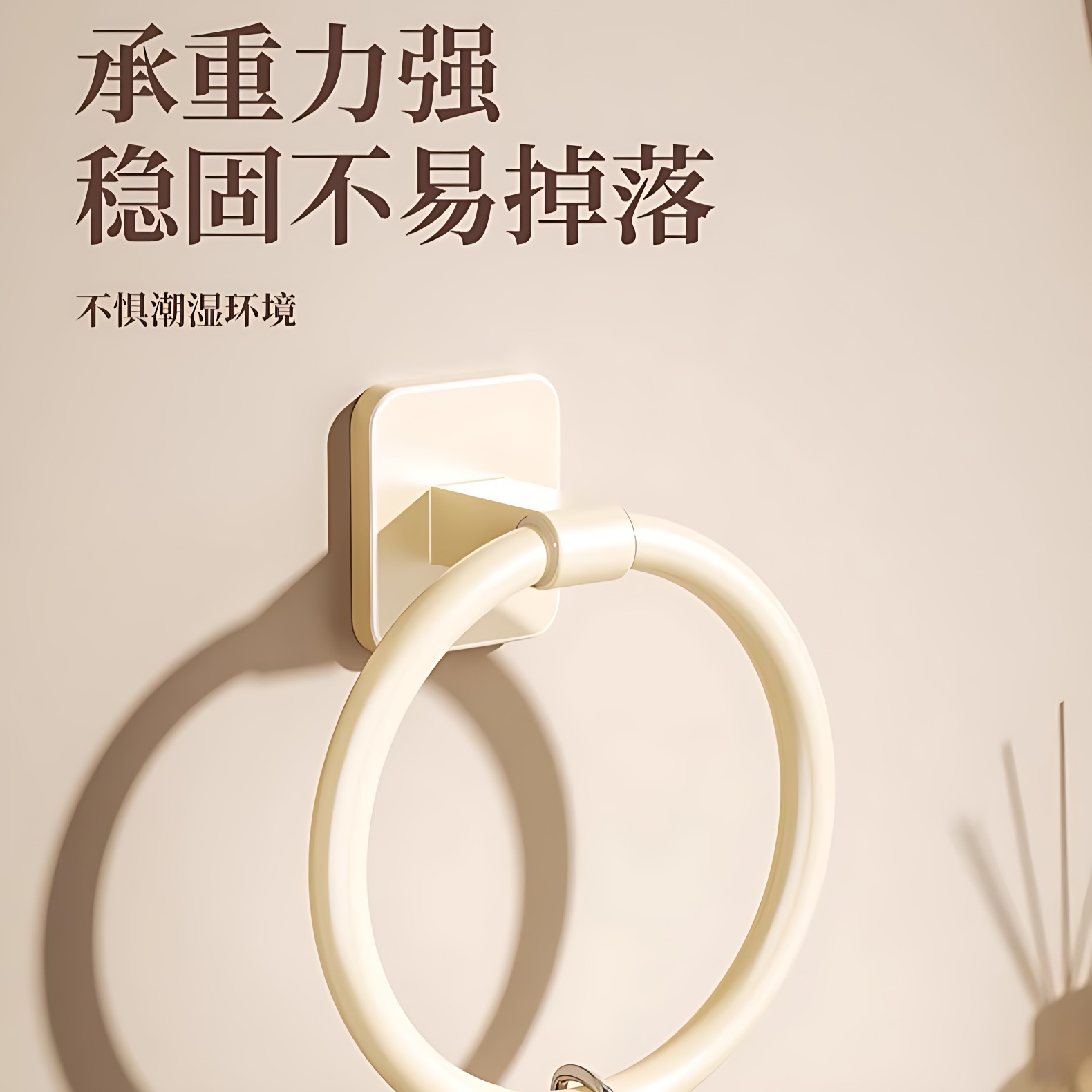 吸盘式 免打孔毛巾环卫生间置物架毛巾架小空间挂环方形毛巾挂杆架