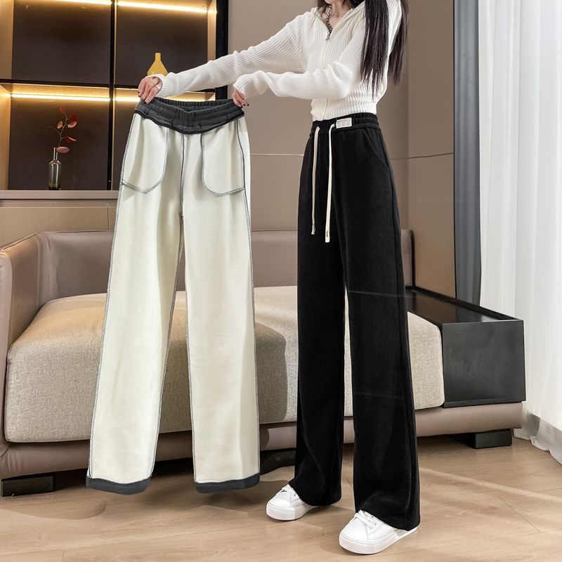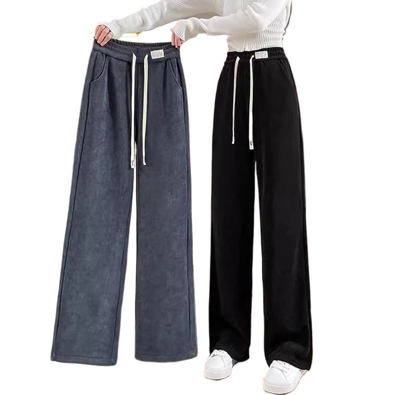 秋冬季 显瘦运动直筒裤 厚款 宽松休闲大码 2025新款 加绒加厚阔腿裤