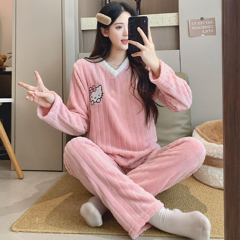 海岛绒可外穿家居服 简约薄款 睡衣女秋冬季 保暖珊瑚绒女士睡衣套装