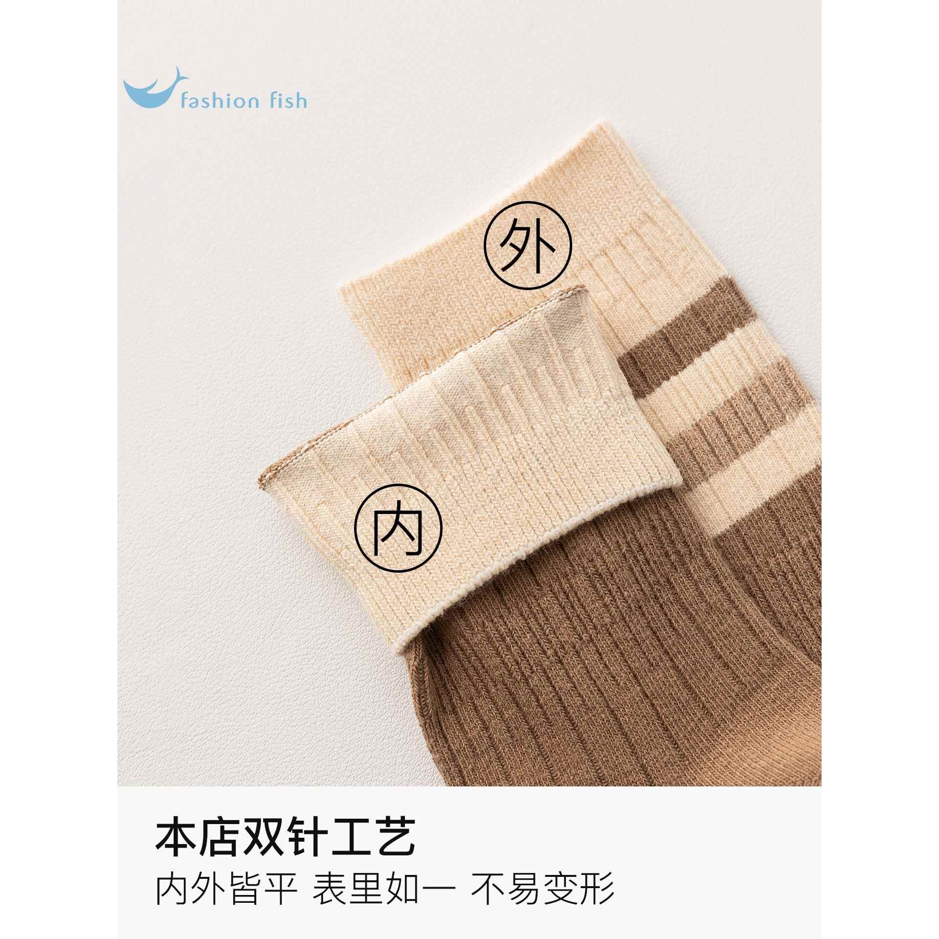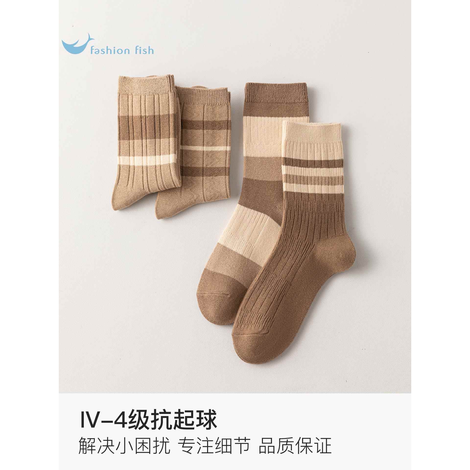 女咖色条纹棉袜 爆款 袜子女士春秋季 中筒纯棉防臭2025新款
