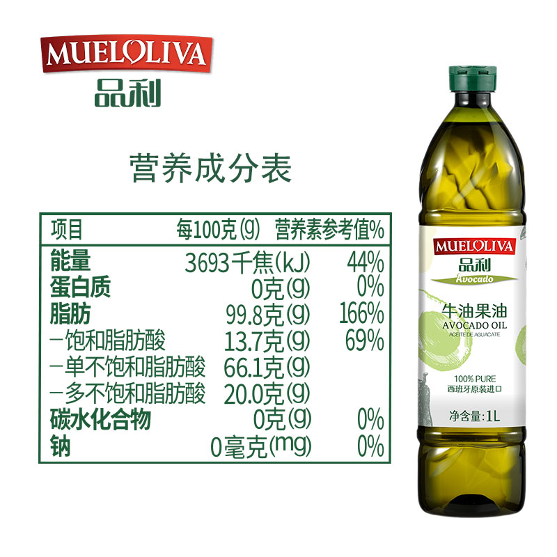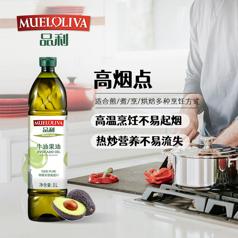 品利西班牙进口牛油果油1L瓶装 鳄梨油食用油家用热炒凉拌高烟点