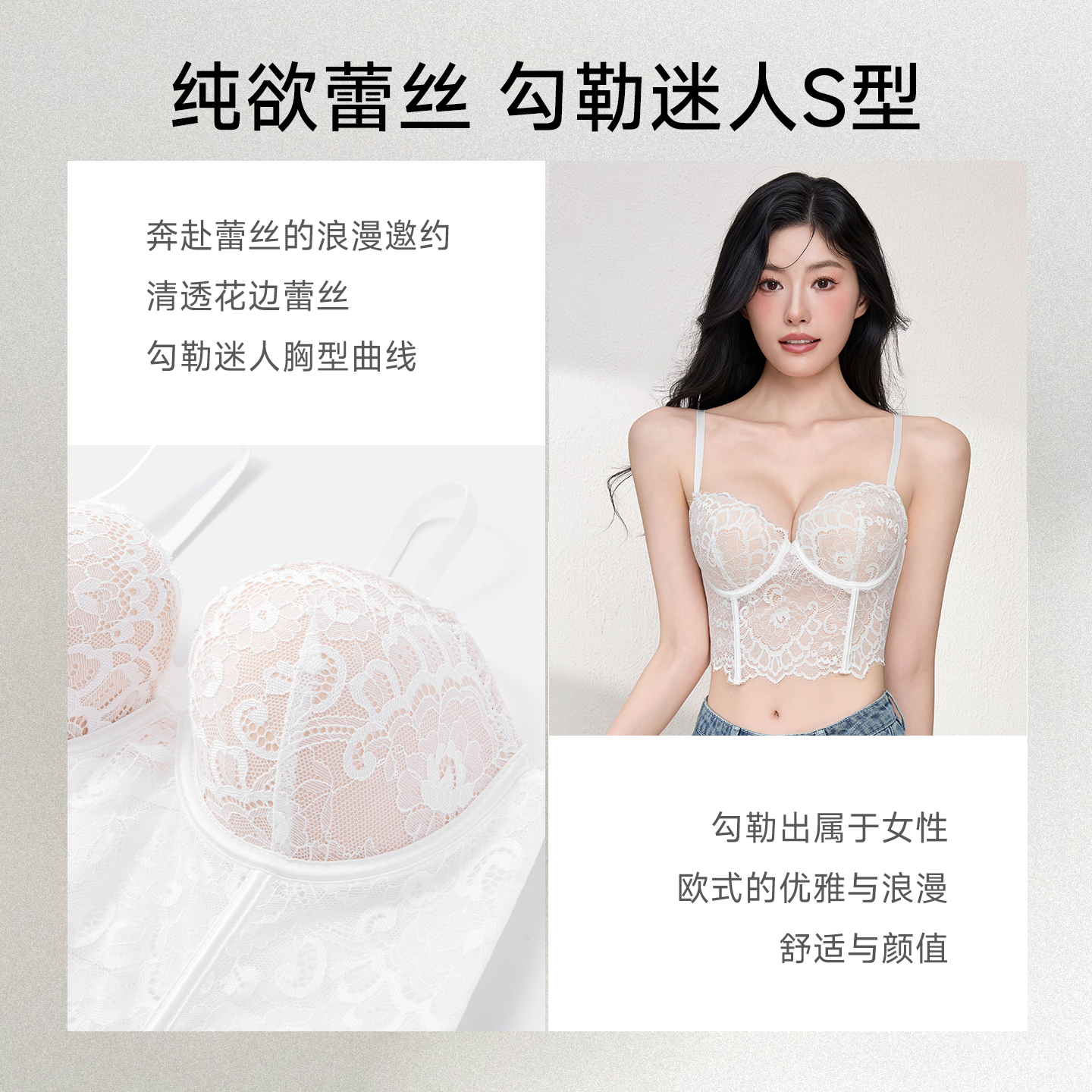 好奇蜜斯前扣内衣女聚拢小胸性感蕾丝薄文胸罩套装 美背纯欲夏法式