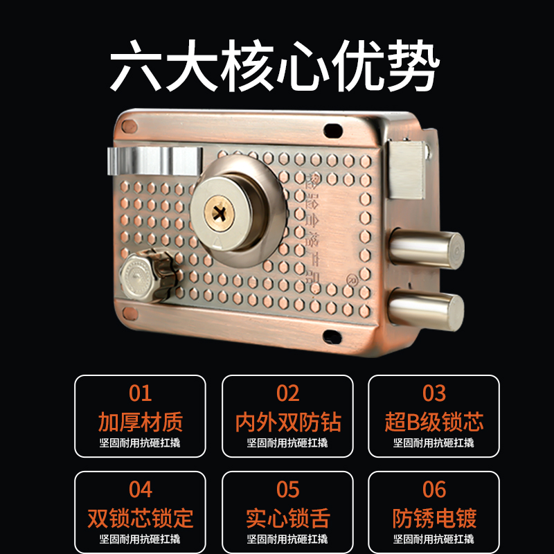 外装 门锁室内房门锁木门铁门锁防盗门锁芯大门锁门安全带钥匙 老式