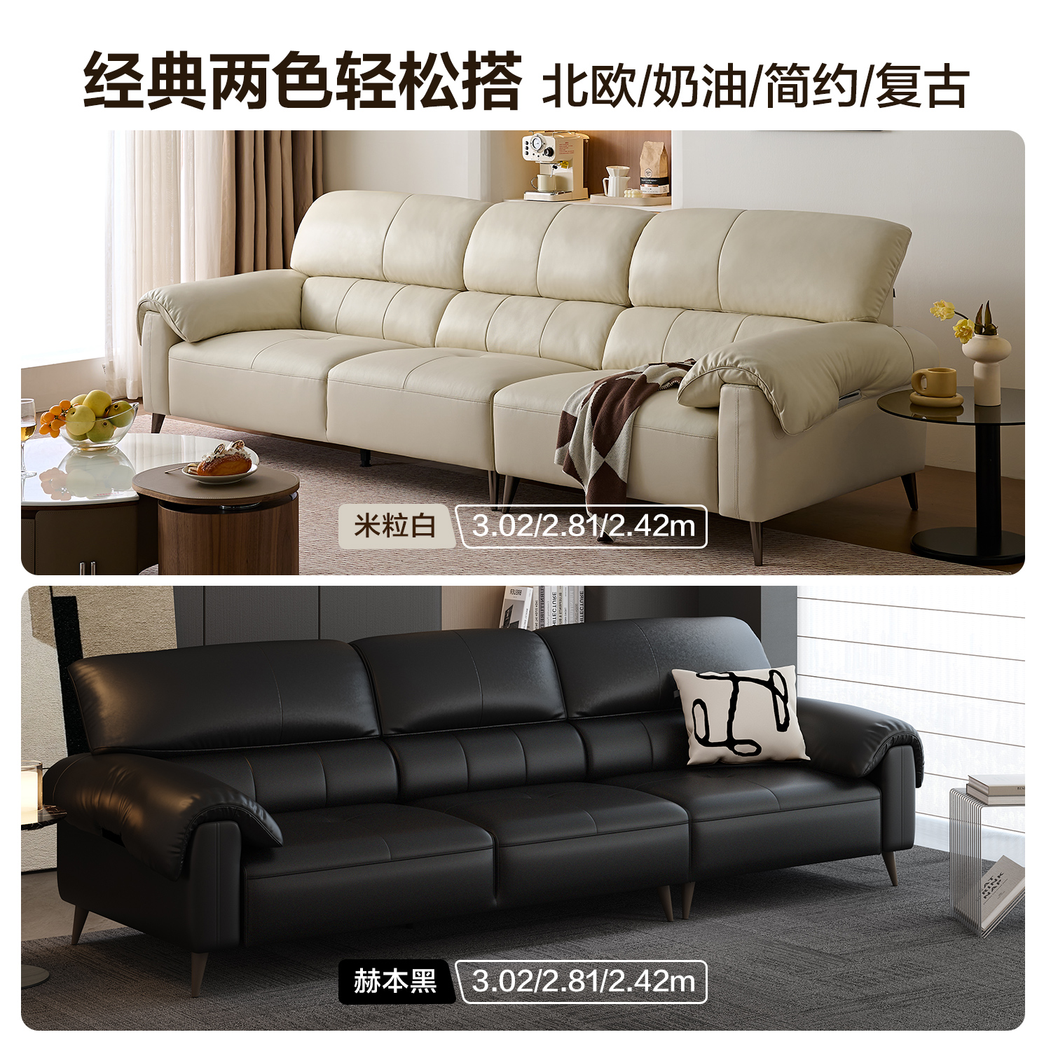 全友家居奶油风真皮沙发客厅2025新款 复古风高端大气黑色沙发家具