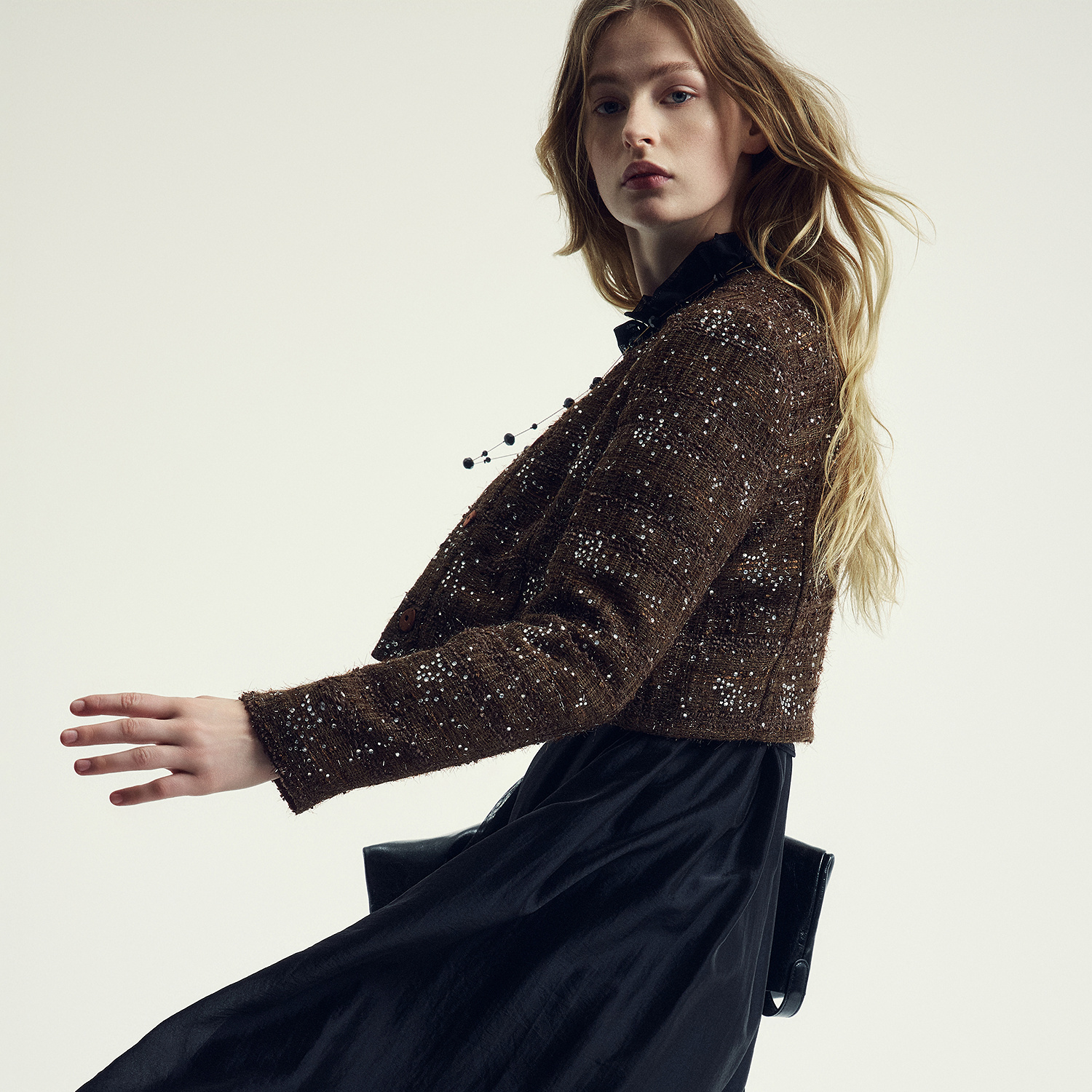 BCBG25秋冬新款 精致气质设计感百搭钻饰肌理花呢箱型女外套 时尚