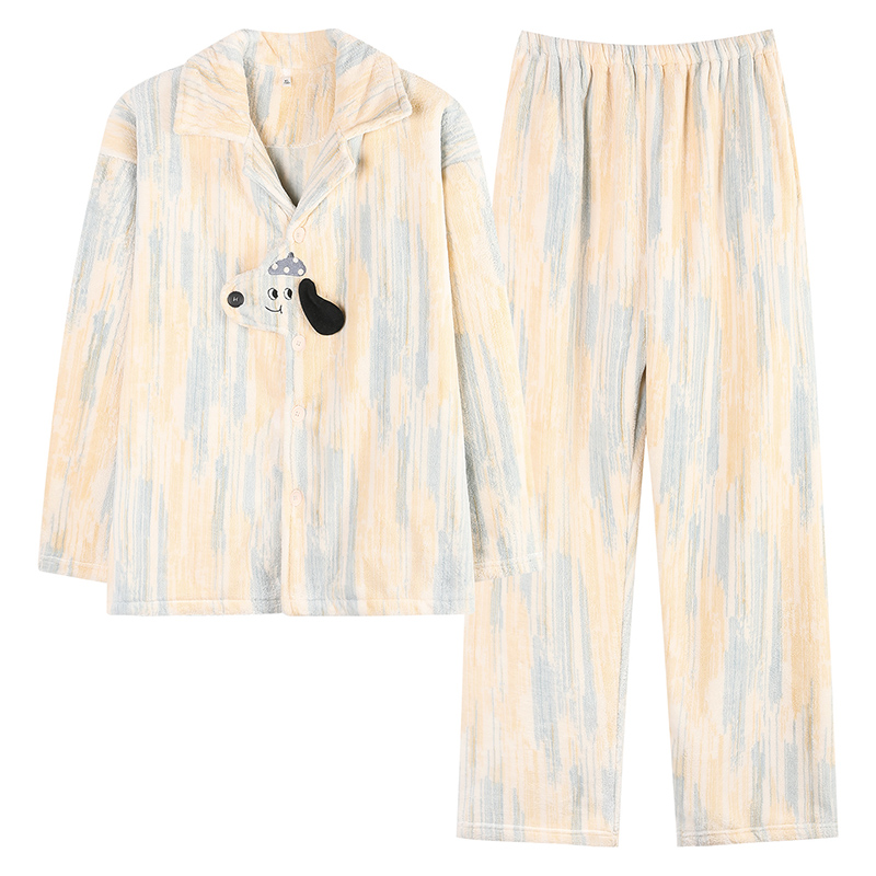 秋冬款 猫人睡衣男款 家居服套装 男士 法兰绒加厚加绒珊瑚绒2025新款