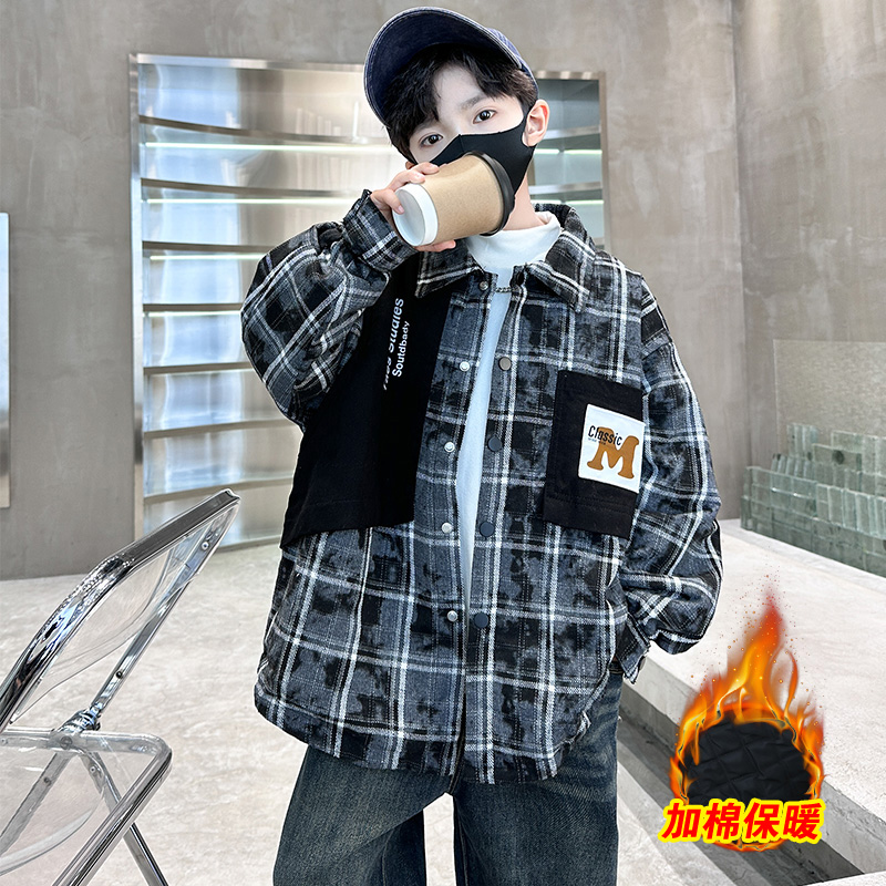 中大童加厚男孩衣服夹棉冬装 儿童装 冬季 2025新款 潮 男童外套秋冬款