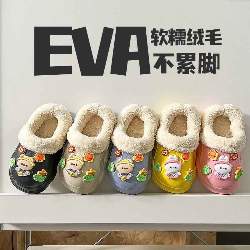 可爱室内家居加绒保暖男童防水棉鞋 2025新款 女童秋冬季 儿童棉拖鞋