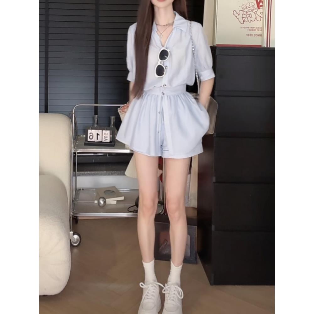 上衣宽松休闲阔腿短裤 大码 衬衫 气质短袖 两件套 胖mm穿搭巨显瘦时尚