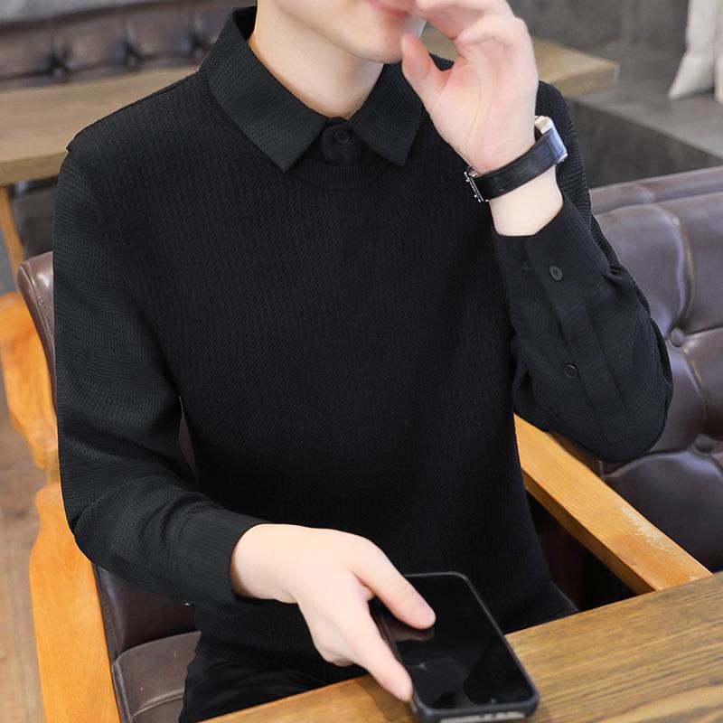 假两件针织衫 新款 商务气质成熟风打底衫 修身 1013n 秋冬季 长袖 男士