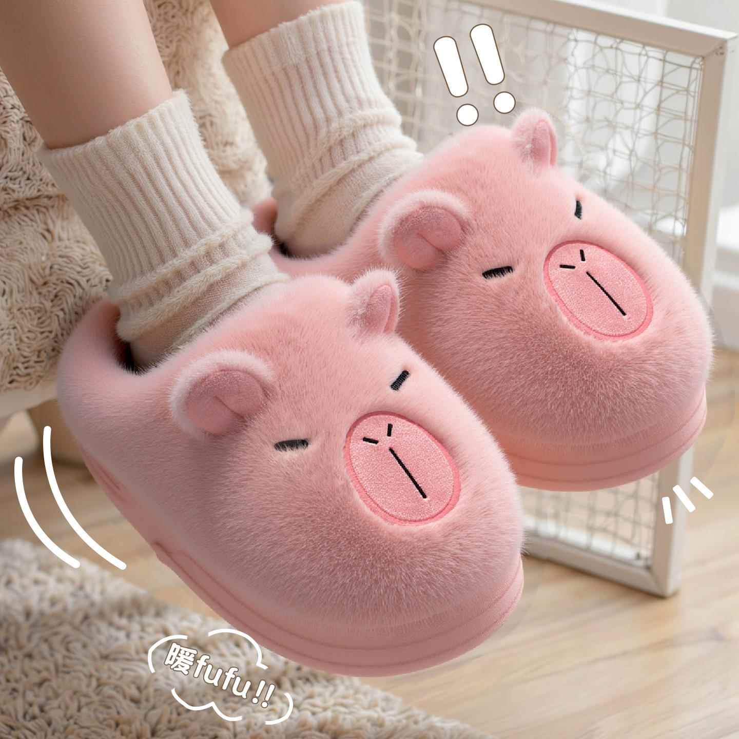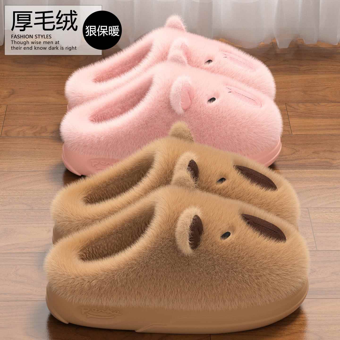 毛绒可爱月子棉鞋 秋冬季 女士包跟室内家居2025新款 卡皮巴拉棉拖鞋