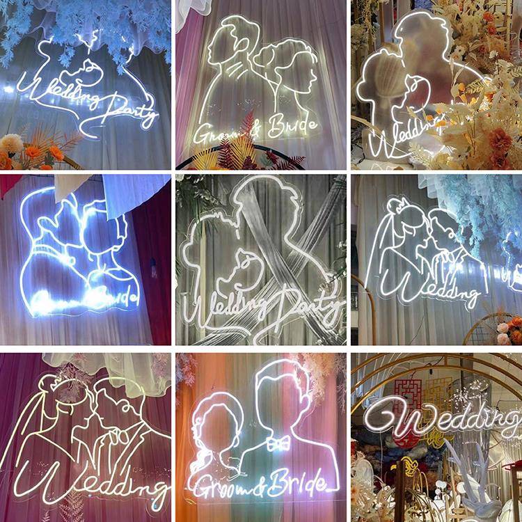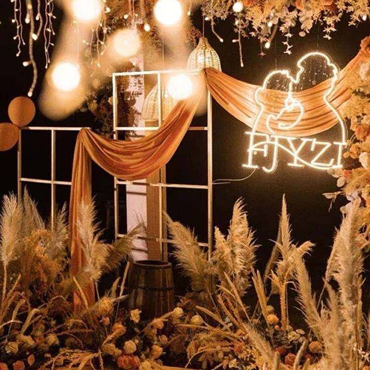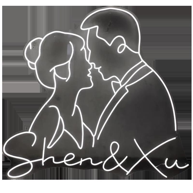 婚庆亚克力发光装 饰灯道具发光情侣头像新人剪影字母背景舞台布置