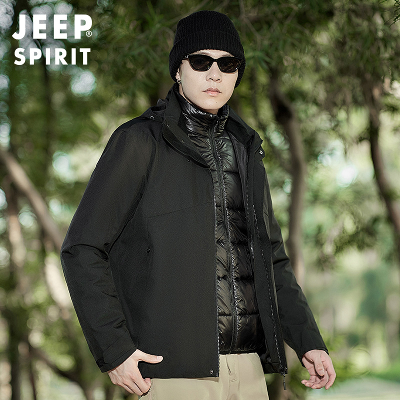 可卸连帽外套中老年男装 三防户外冲锋衣中年男士 夹克 爸爸秋装 新款