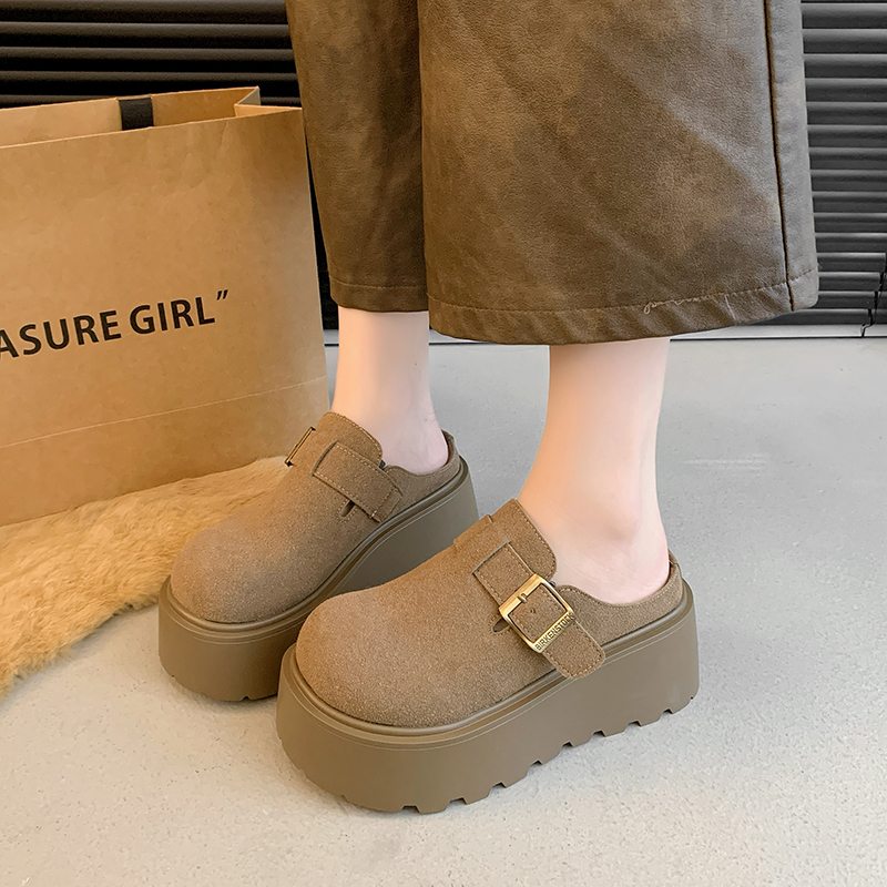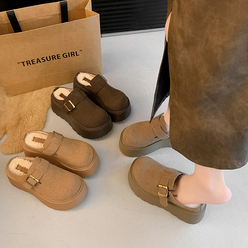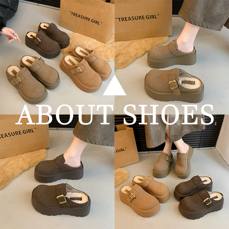 一脚蹬博肯包头半拖 秋冬加绒毛毛棉拖鞋 厚底勃肯鞋 女外穿2025新款