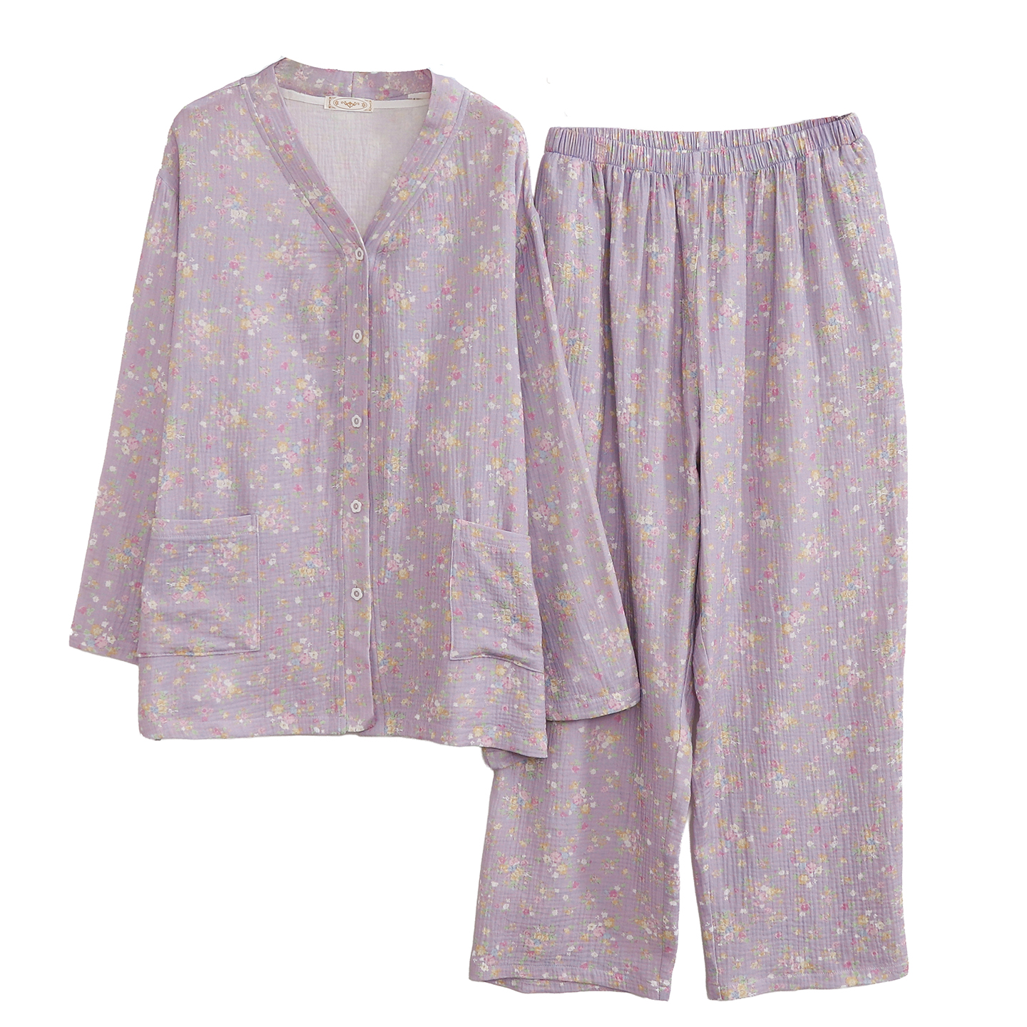 中老年妈妈200斤孕妇家居服 长袖 睡衣大码 胖mm纯棉双层纱春秋冬款