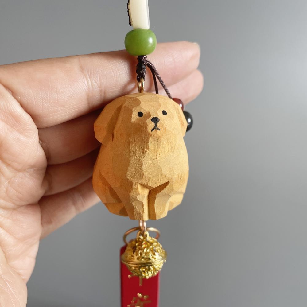 手工木雕可爱金毛车挂小狗汽车后视镜挂饰新车装 饰高档创意礼物